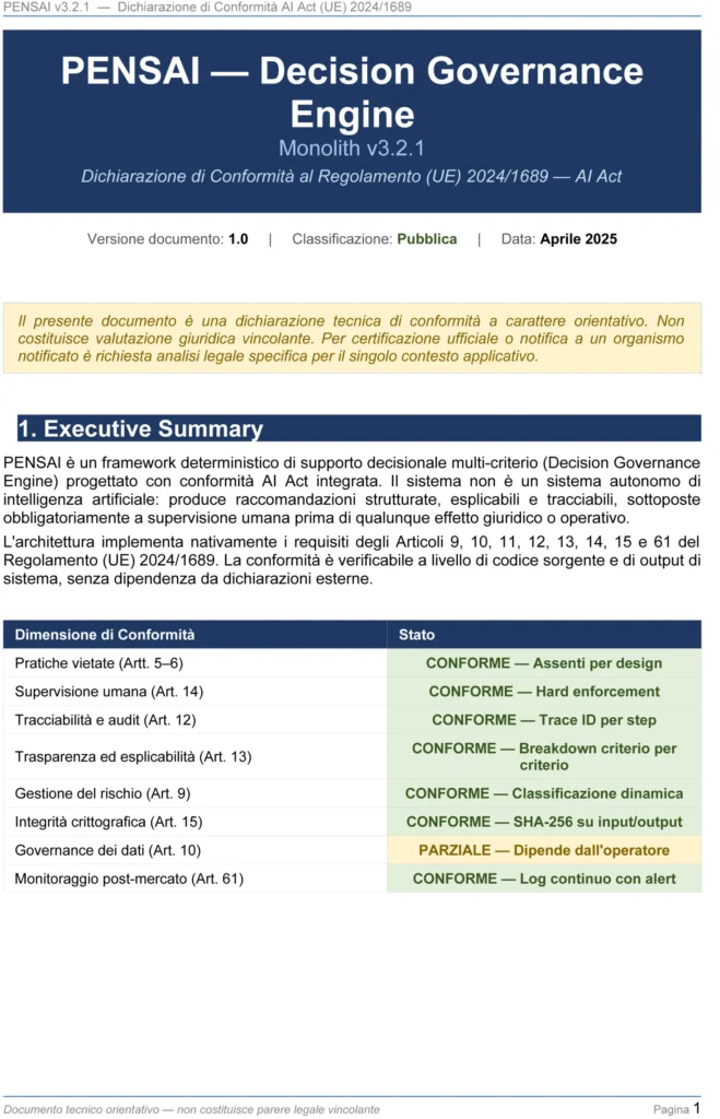 PENSAI non prende decisioni. Non agisce. Non esegue.